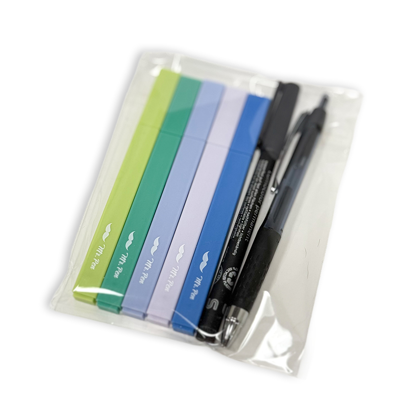 A variety of 5 highlighters all in the COOL color range along with my FAVORITE writing pen for writing in your Bible and my favorite permanent pen for writing on your flags. All the bags are different!