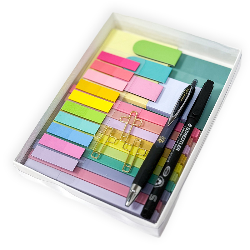 Bible highlighter, fine tip gel pen, and a permanent pen